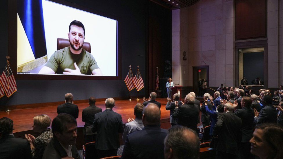 After the speech, House Speaker Nancy Pelosi tweeted that it had been a “distinct privilege” to hear from the Ukrainian president, and that the US was “unwavering in our commitment to the people of Ukraine as they courageously defend democracy”.