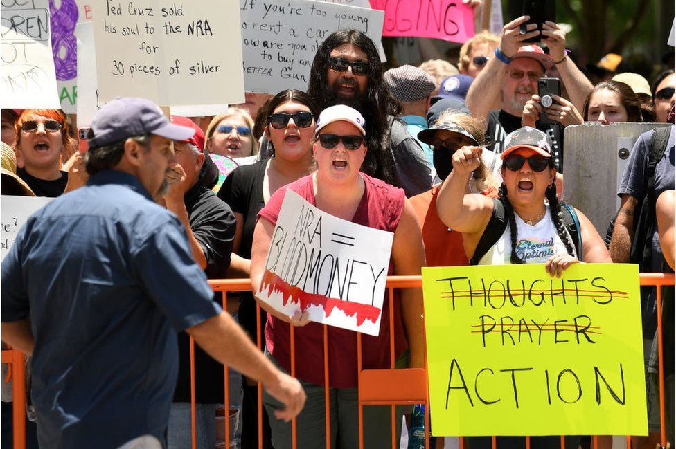 The annual conference of the NRA, which has five million members, is taking place 280 miles (450 km) from Uvalde, the scene of the worst school shooting in the US in a decade.